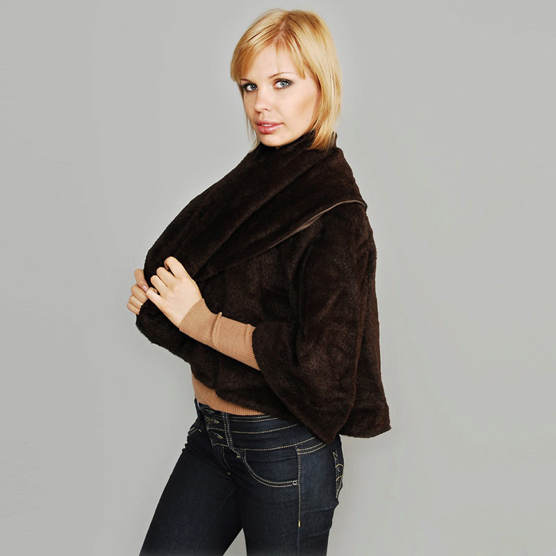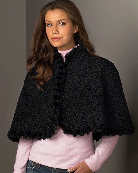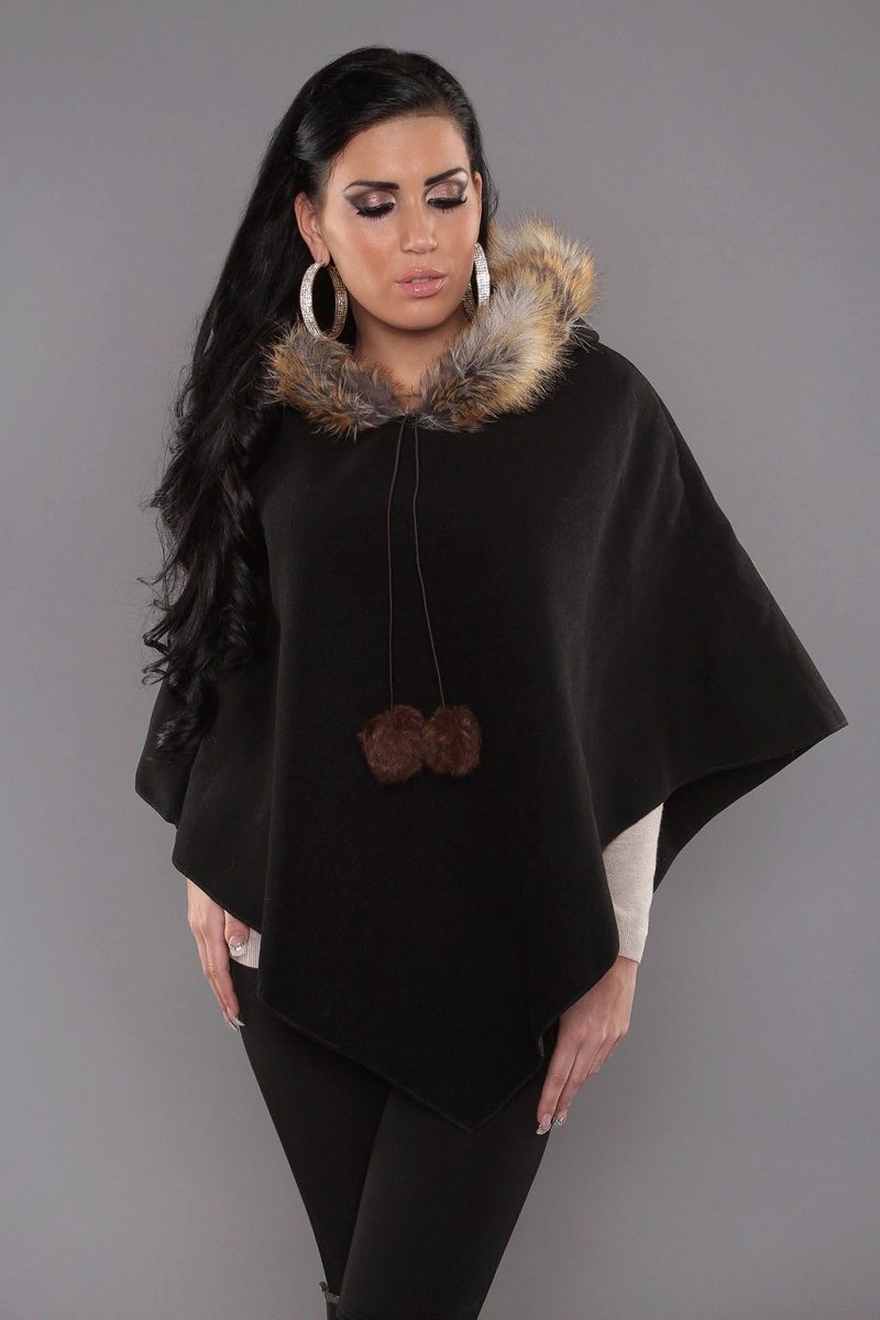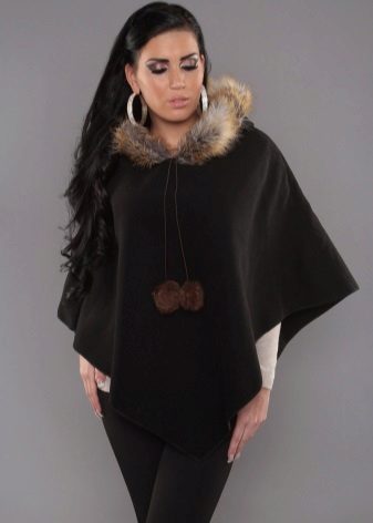 Among natural furs, mink, woodchuck, muton or coypu are more preferable. Artificial fibers and swan or ostrich fluff are also used. Mohair poncho capes look very cute and attractive, and are also quite warm, therefore they are ideal for cool weather.