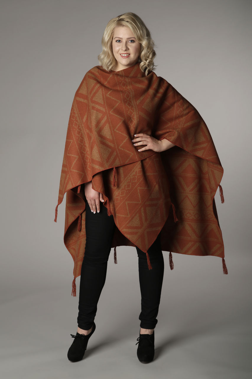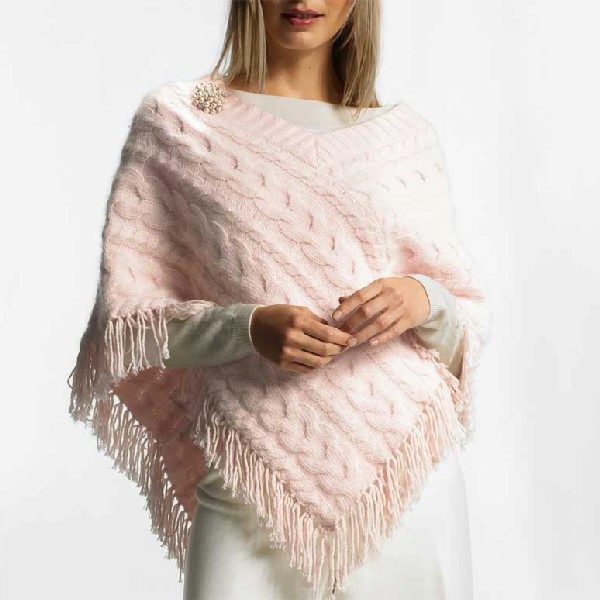 You can create a poncho with your own hands, using a stole. It is only necessary to throw it over the shoulders and fasten a beautiful brooch in the chest.
