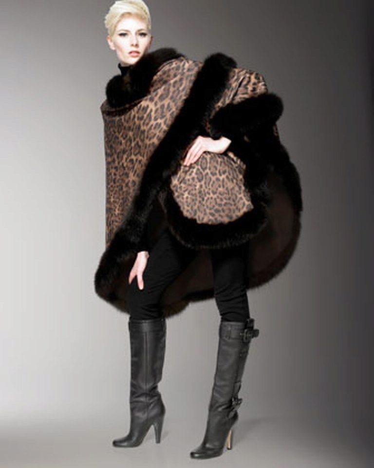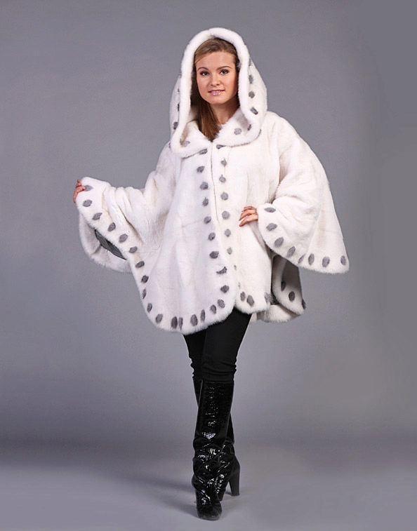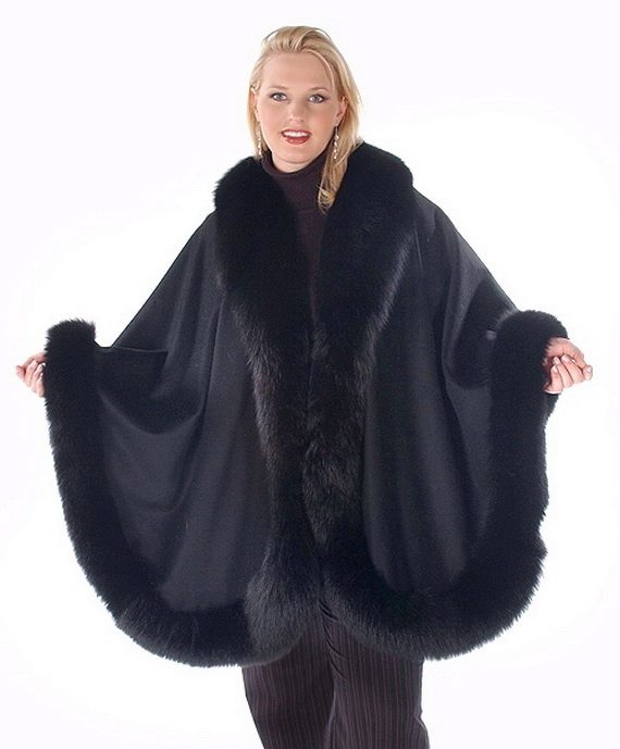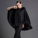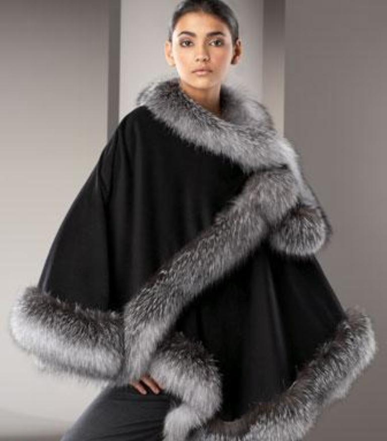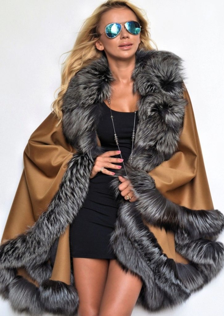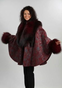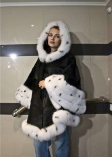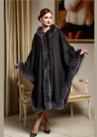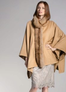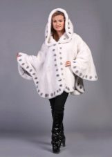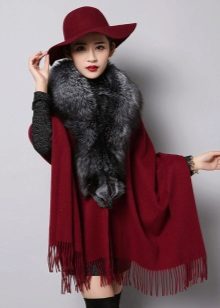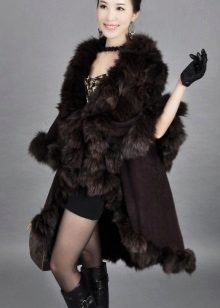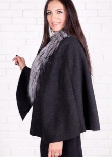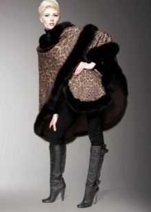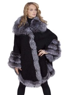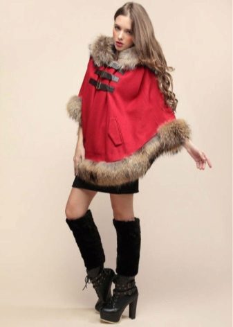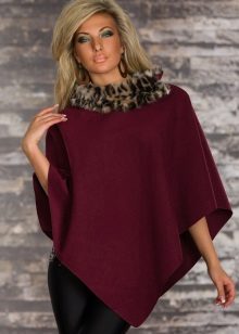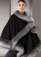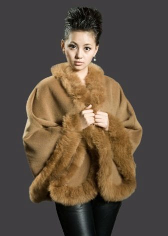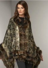 Designers have developed many options for the material for the poncho and its finishing. Now you can find a camouflage military model, as well as an Irish cell. For sewing fur trim using mink, sable, ermine, marten, silver fox and other fur. Models with a fringe are very practical. Fur trim is not only a beautiful element: even small inserts perfectly retain heat.
