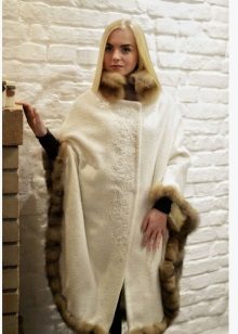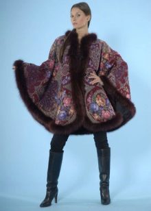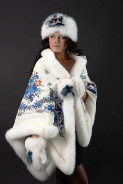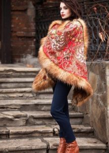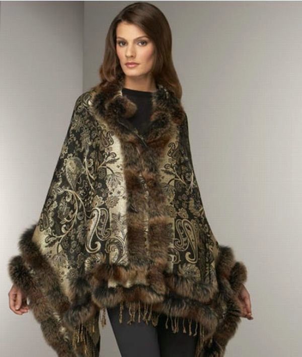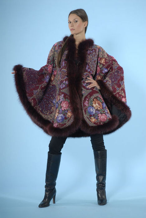 Revival of forgotten traditions returned Pavlovo Posad shawls to fashionThe sewn poncho with fur looks sophisticated. In it, any fashionista will be transformed into a Slavic young lady, sung by poets.