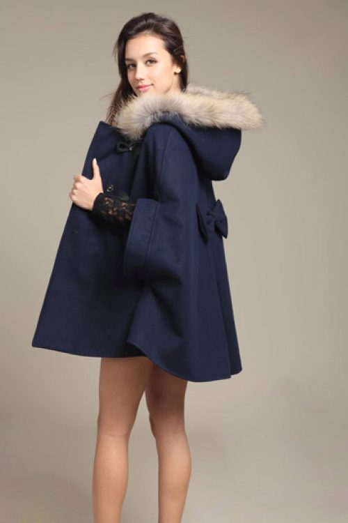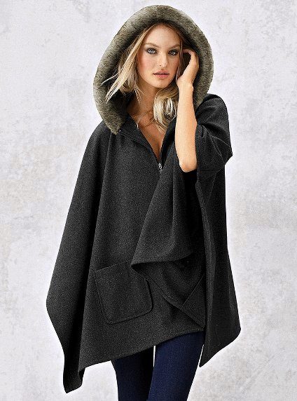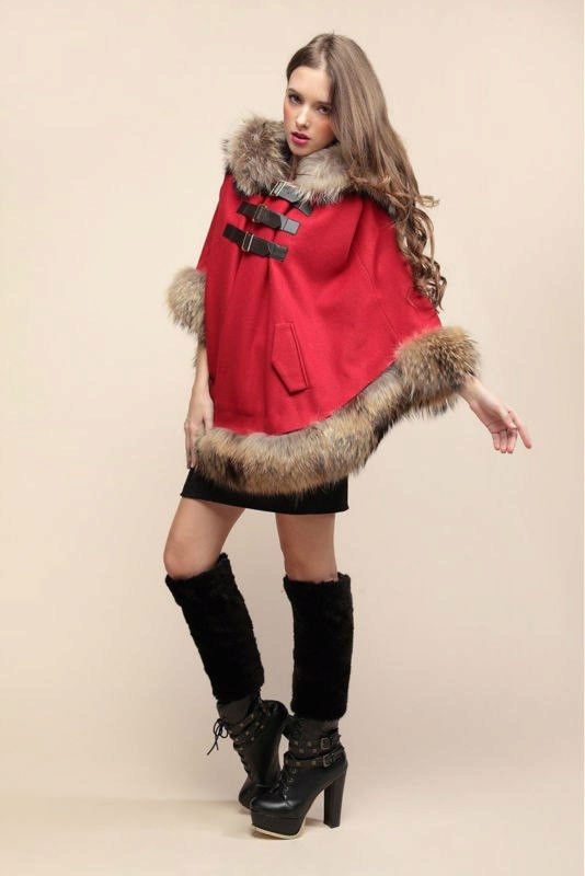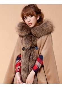 A refined and feminine look has a poncho with a fur collar. In addition, the fur collar will not only beautify, but also protect from wind and frost. And on rainy and snowy days, the skin does not get wet and provides a quick disposal of moisture.