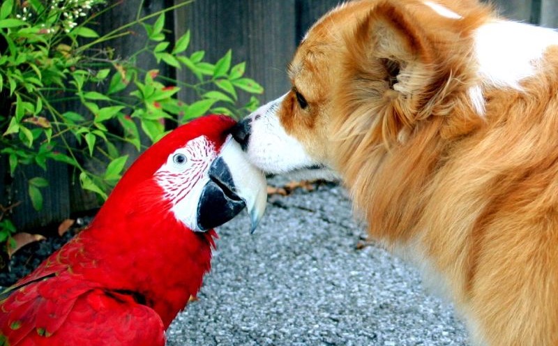 Macaw parrots are brave and very brave birds. If they are attacked, they give the surrender. But by their nature, these birds are quite friendly, they are good both to people and to other pets.