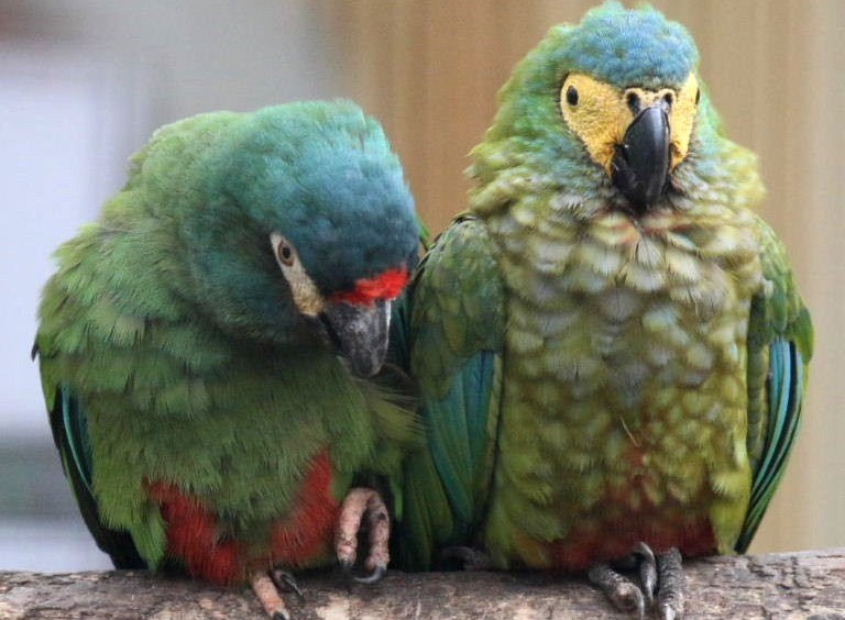 Macaw parrots are monogamous in nature and form a pair once and for life. In the event of the death of a partner, they are very hard for their loss.