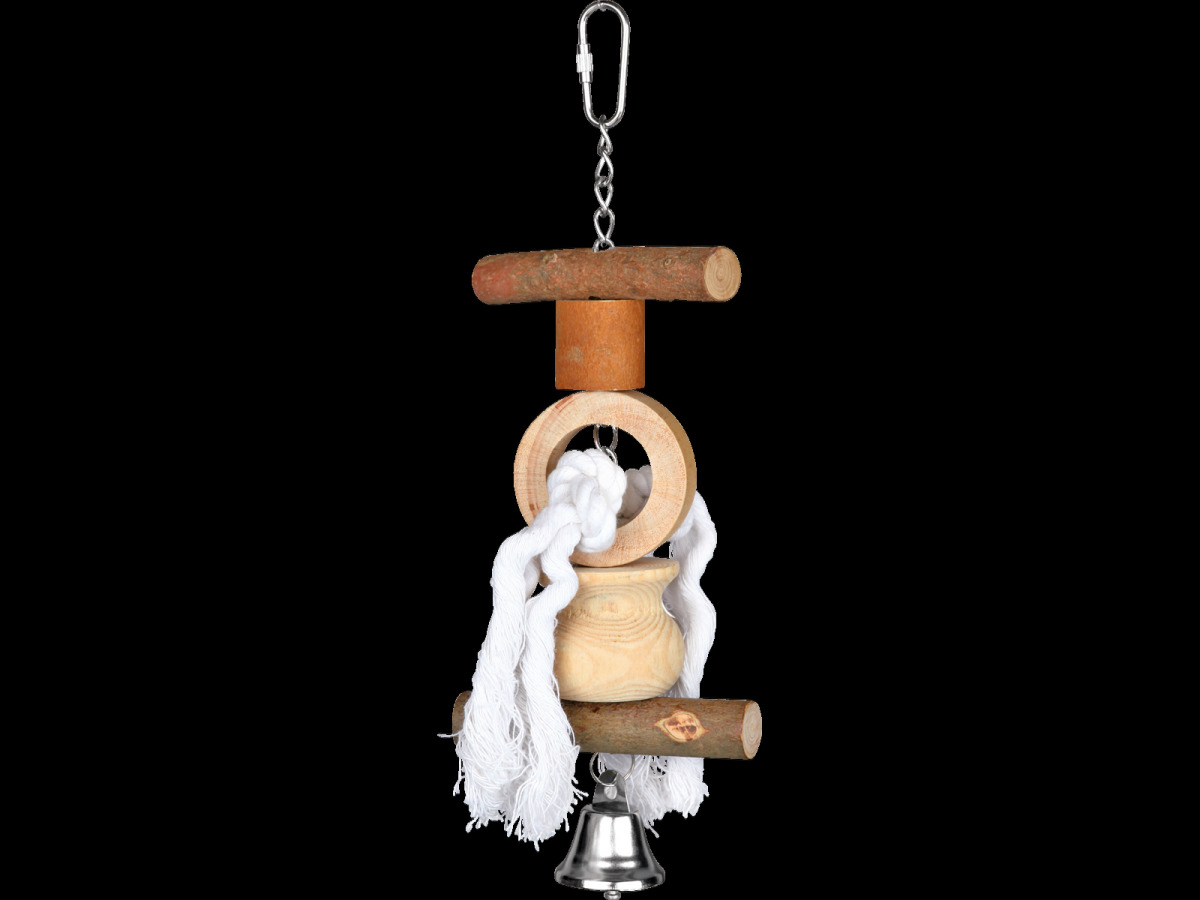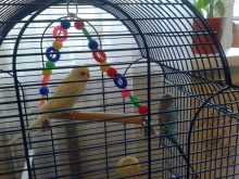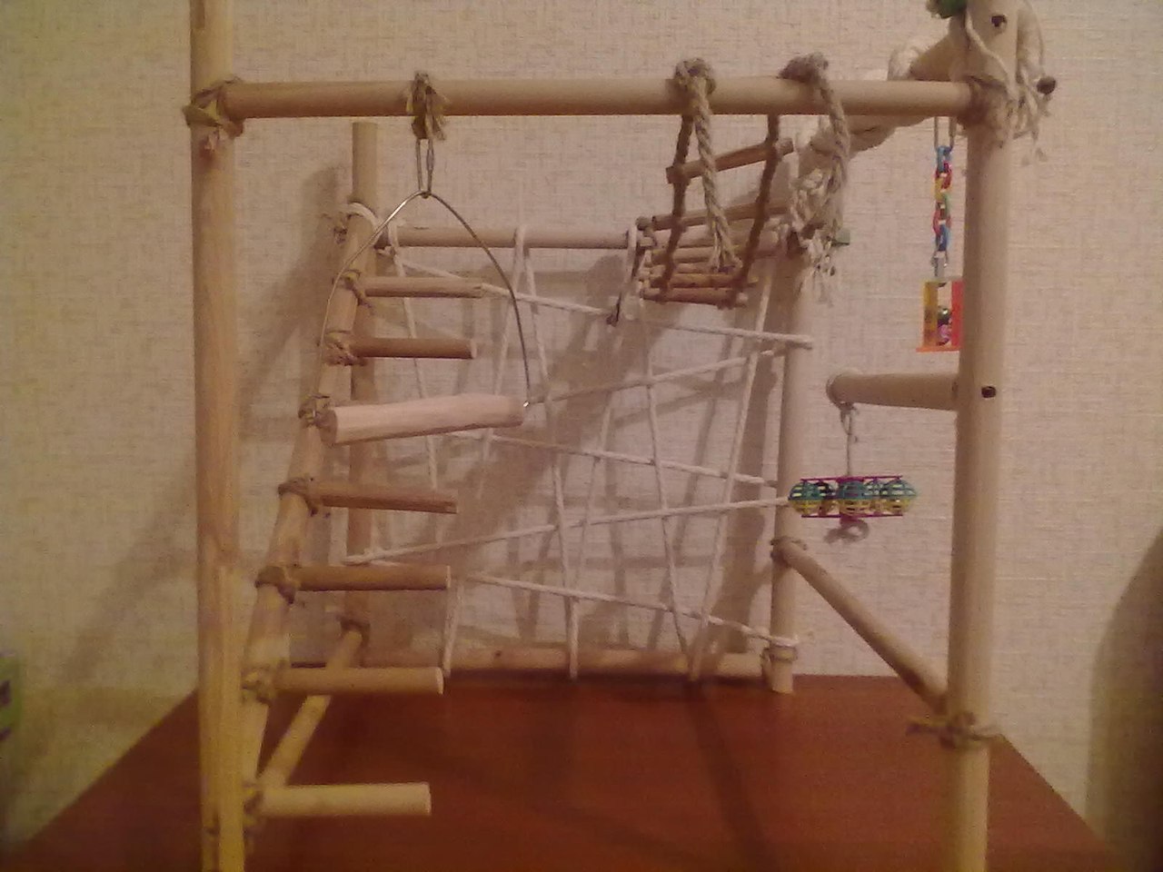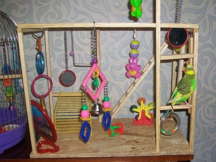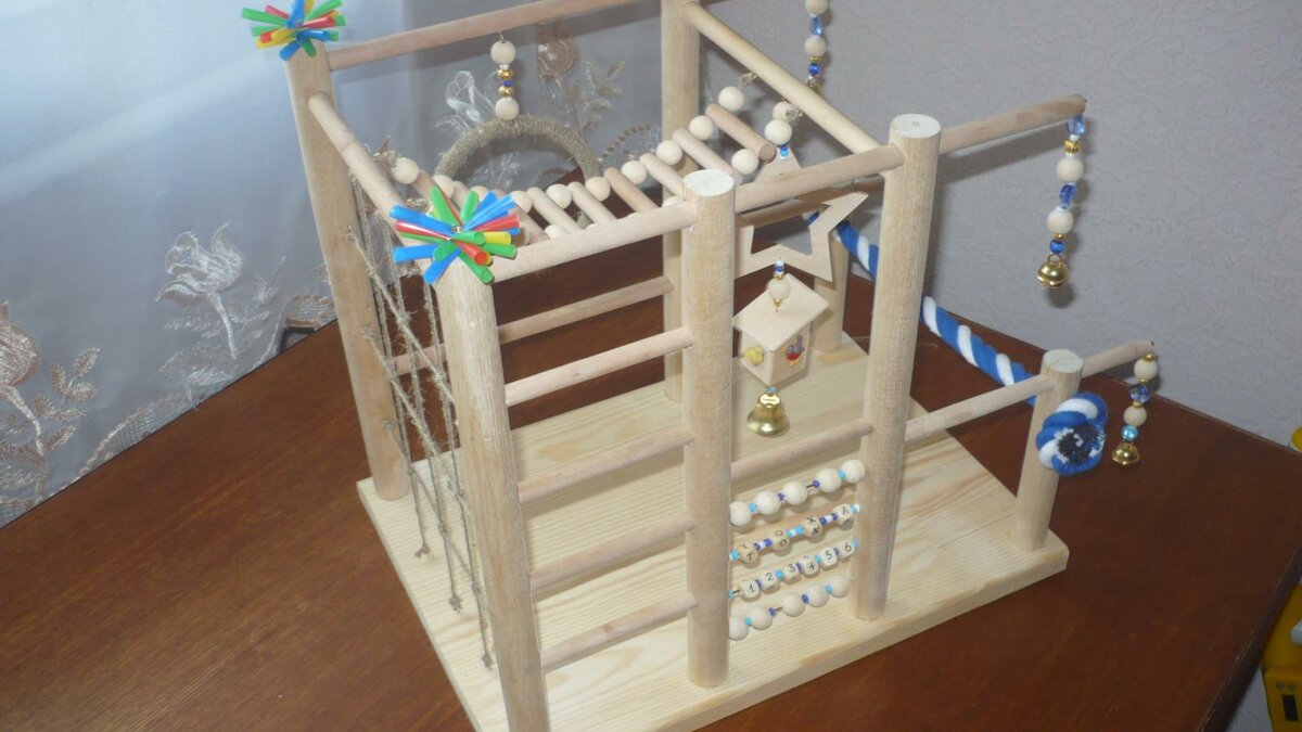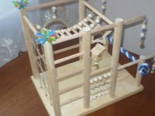This toy will appeal to your pet most. Most of the cells are not large enough, and such a toy, without taking up much space, will allow the area for climbing a parrot to increase.