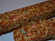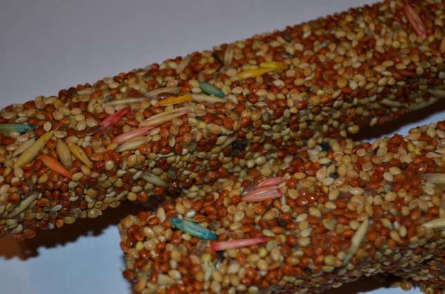 Parrots will be happy to play with food wrapped in a wicker mat and suspended from the ceiling of the cage, like kids with Christmas gifts.