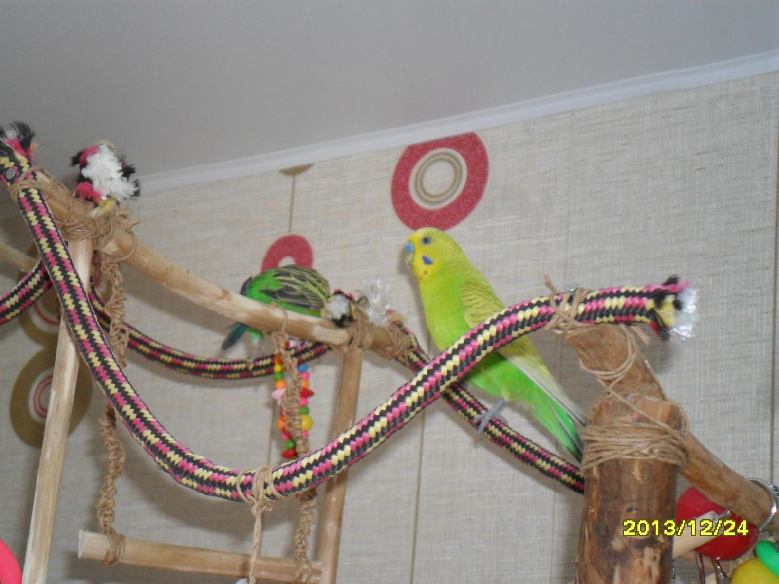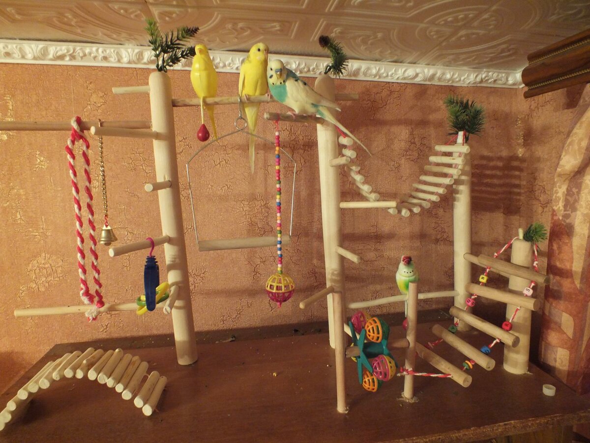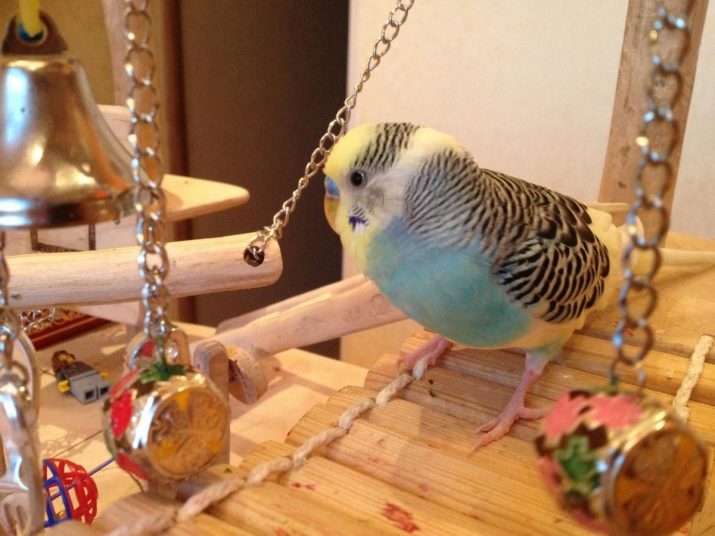 House wavy parrots with pleasure will play for hours on the ropes, rocking merrily. As soon as they stop climbing the rope back and forth and swing, it's time to let them rest. Parrots can be closed in a cage, and the ropes clean up until the next walk of the birds. The same, but smaller, ropes can be hung in the aviary.
