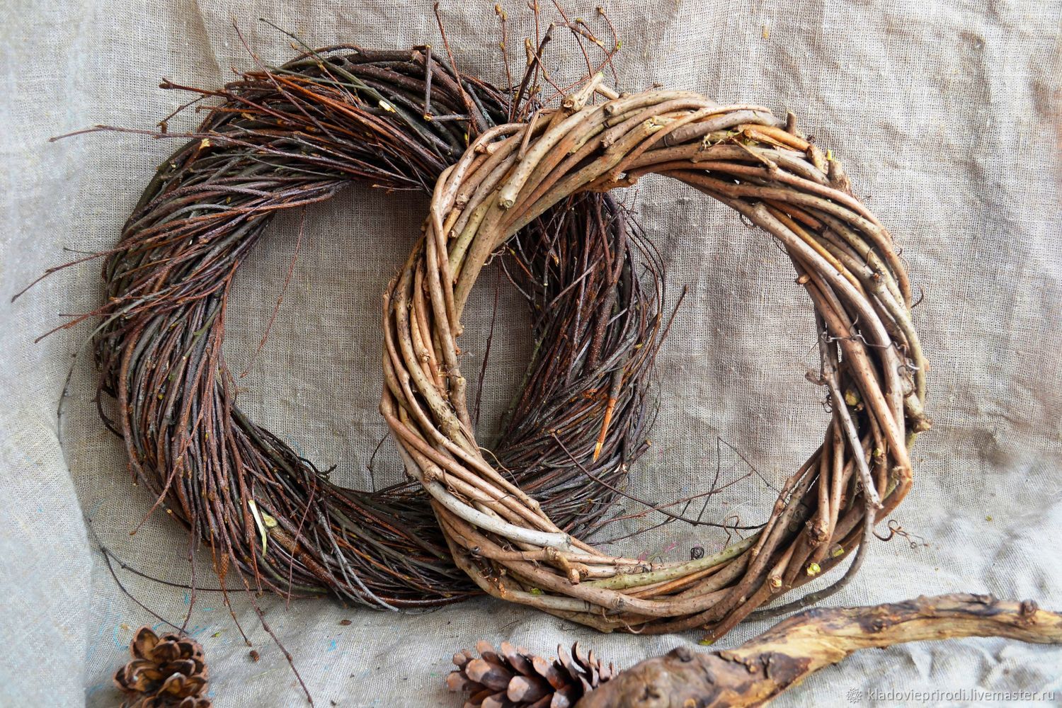 - Make a hard wire circle and make sure the ends are securely connected. You can also use a hoop if there is enough space in the cage to hang it. You will need from 20 to 50 willow twigs to form a soft and beautiful wreath from 30 cm to 2 m.
