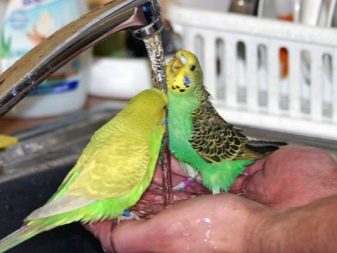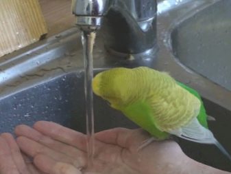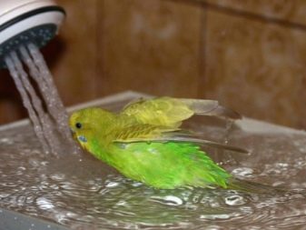 Some birds happily bathe in the sink under the tap. In this case, you need to make sure that the water pressure is not too great. It is also important that water is not poured into the eyes and ears. You can close the drain hole and type some water in the sink, then turn off the faucet. Least often used for swimming spray. However, some birds like this way of moistening feathers.