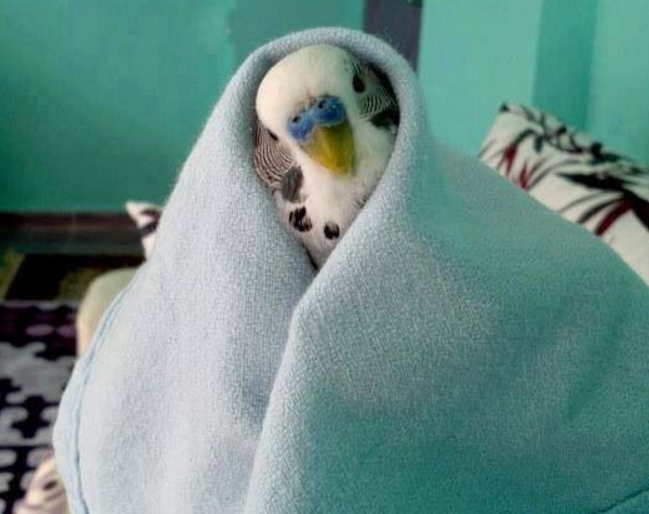 It is allowed for some time to wrap the bird with a towel. However, rubbing feathers is undesirable.