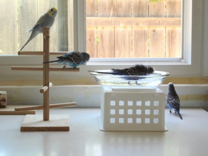 Since many parrots love to swim and do it quite often, it is most convenient to use specialized kupalki. As an alternative, you can use deep plates, but it is better not to install them in the cage. Usually such dishes take up a lot of space, and also it has no protective walls.