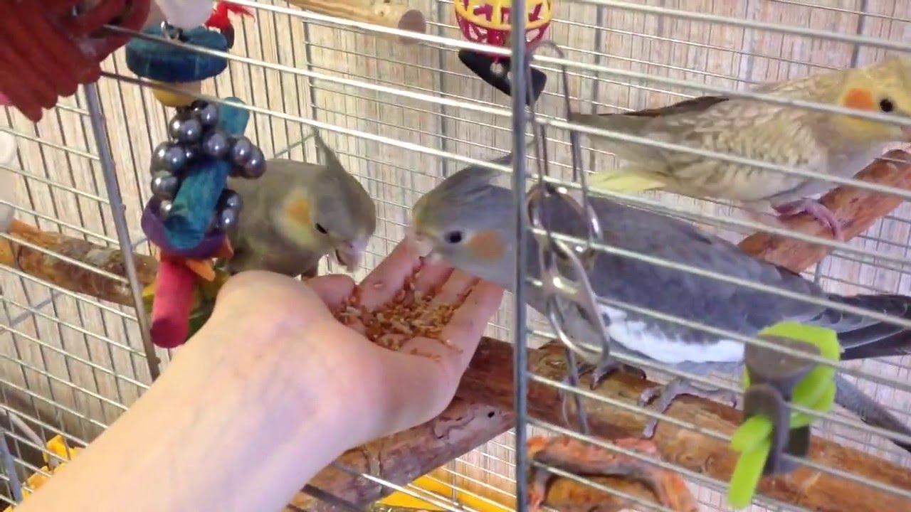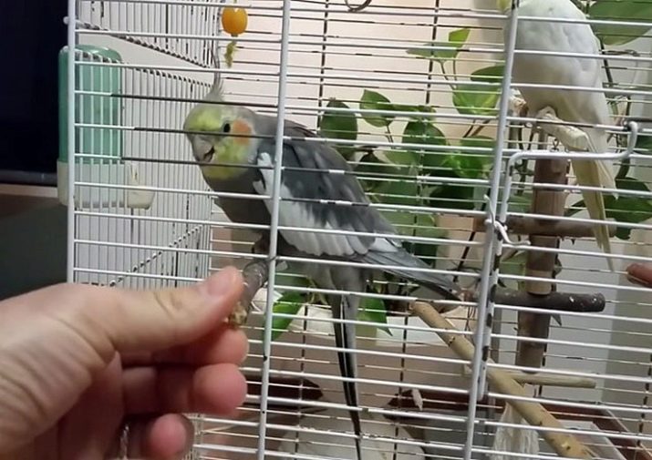 The parrot may not immediately respond to your offer, but if you do this periodically, the nymph will begin to approach and carefully take a piece of treat. Continue to fix this result every day and when you achieve that when a bird is seen between the twigs, the bird happily comes up and takes it, you can be sure that the skill is fixed.