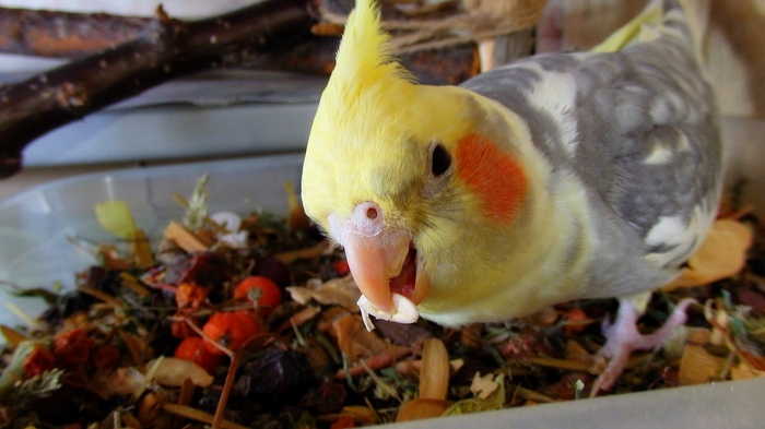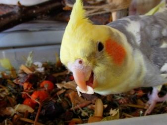 The parrot’s diet should contain 65–70% of the food in the form of grains, and the rest includes vegetables, fruits, boiled beans and corn, greens. In the cage, there must always be fresh water, which must be changed immediately after contamination.