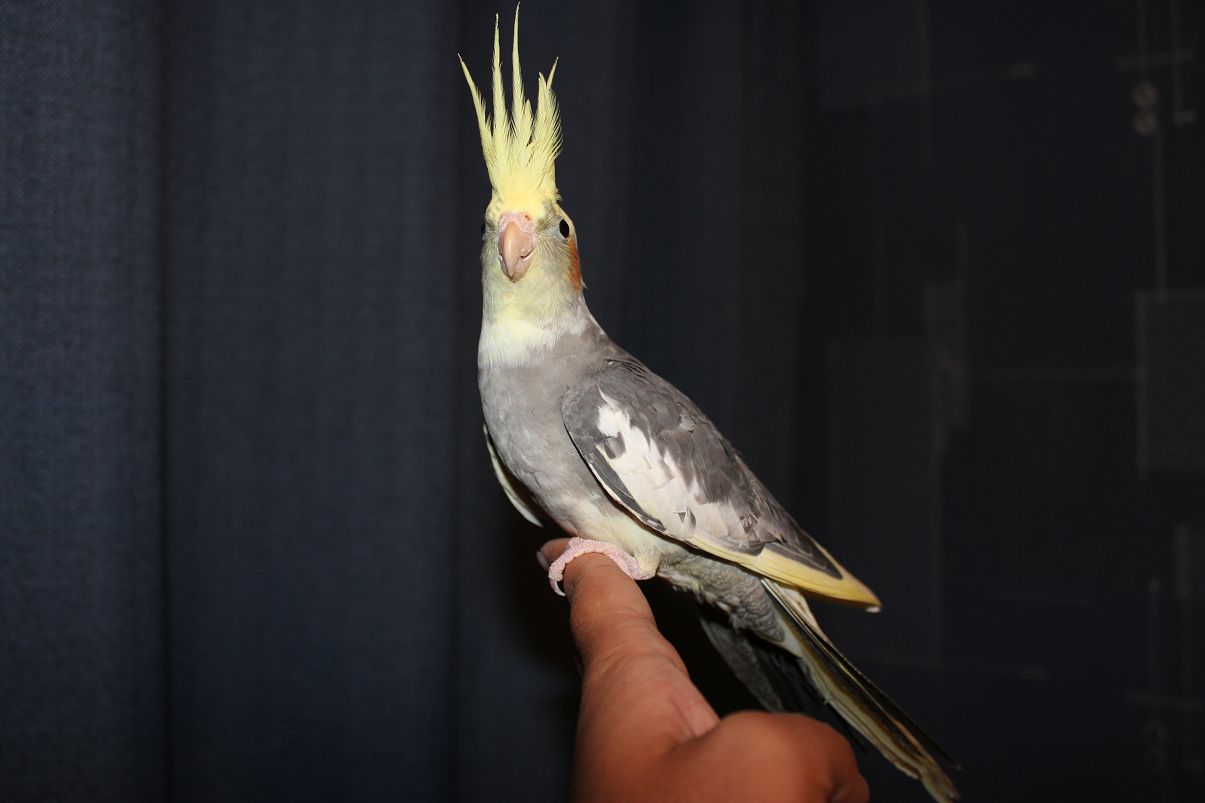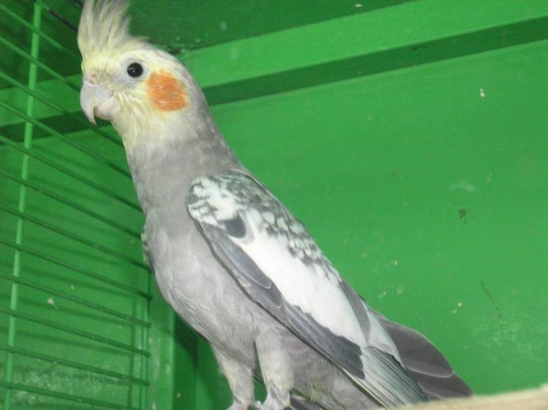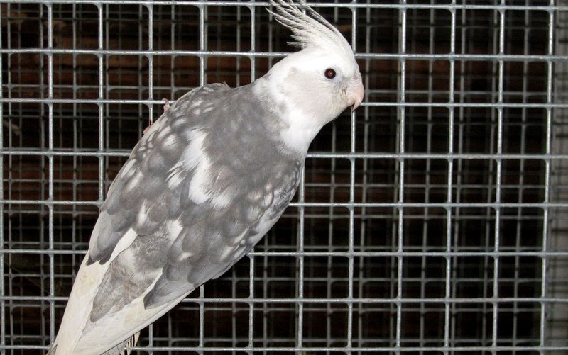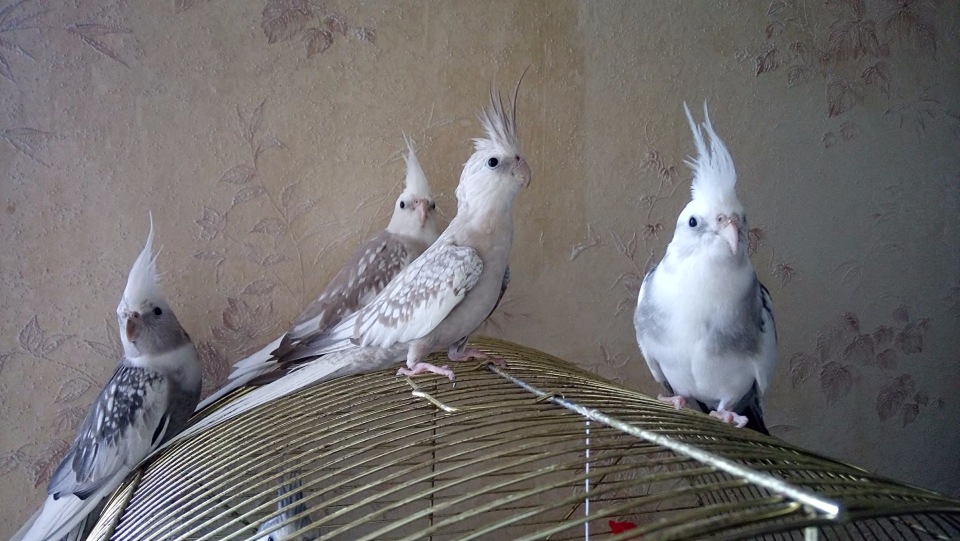 - Light gray color - eyes are black, feathers are of a pale gray color. This subspecies was obtained by crossing gray and white species, so all the other signs of the nymph of light gray color inherited from the gray species - yellow head and tuft, orange cheeks, light steering feathers.