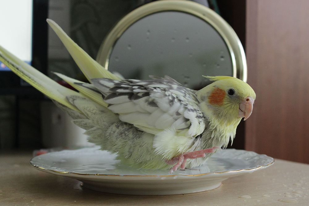 Corella love to swim in trays with water, but such procedures are not carried out if the room is cool, otherwise the pet will catch a cold.