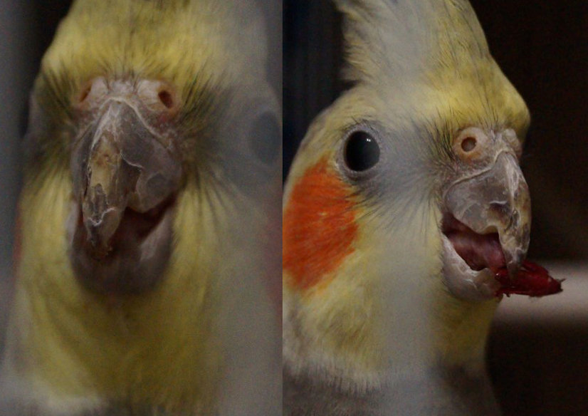 - Overgrowth and deformation of the beak - the wrong composition of nutrition contributes to the fact that the horny parts of the beak do not grind and grow in time. This is the case with soft feed without the proper load for splitting hard seeds. The deformation of the beak over time leads to its incomplete closure and disrupts the process of eating. To fix this, put the plumes of branches with bark in the cage, place mineral stones to grind the beak, and also transfer the bird to another diet, at which it will receive solid food with vitamins A, C and calcium.