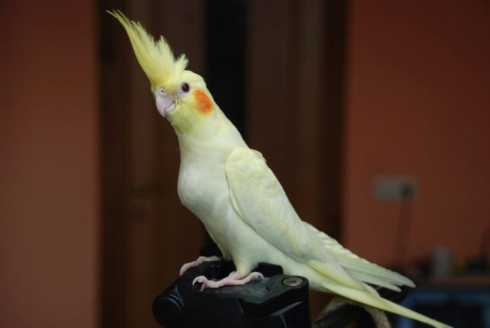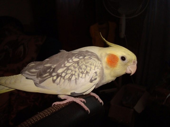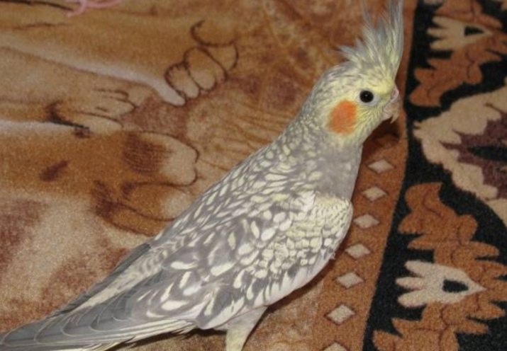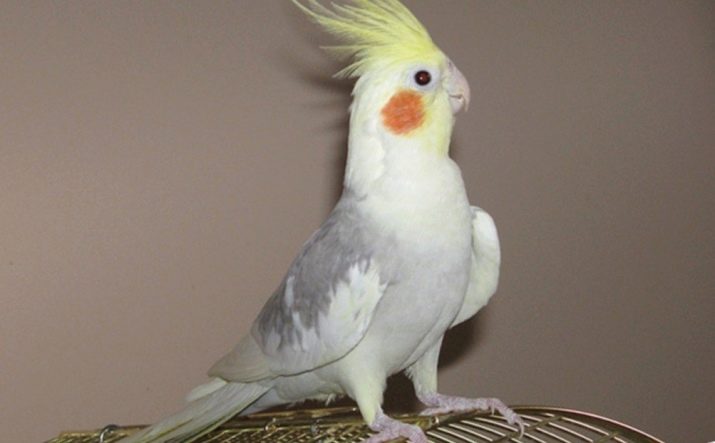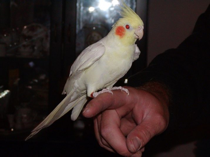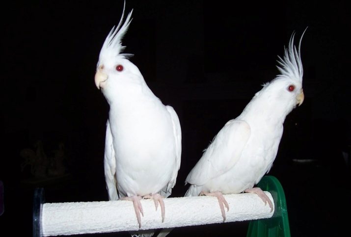 - Albinos - birds' eyes are red due to the fact that there is no pigmentation at the genetic level. Feathers of nymphs are white or with light cream tinting, but the feathers on the head, including the tuft, have a yellow color, and the cheeks are orange. In albino males, the whiteness of feathers is more pronounced than in females. In females there may be yellowish spots on the wings, in the undertail.