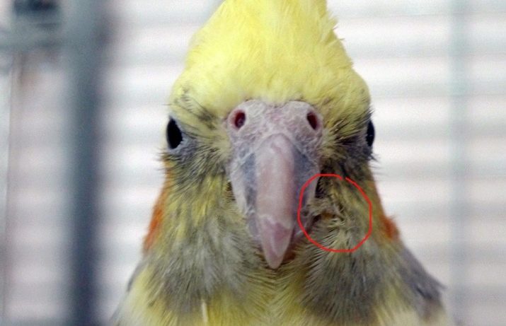 - Scabies Tick - The disease is transmitted with poor-quality food, through dirty objects of bird lives and from sick birds. Tick parasitizes in the area of beak, cloaca, near the eyes and on the legs. The decorative appearance of a parrot deteriorates, the bird weakens and may die. For treatment, the cage and all objects in it are sanitized, and the affected areas are smeared on the bird every three days with aversectin ointment until complete recovery.