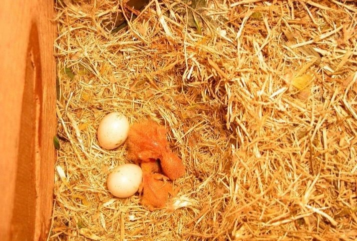 In each laying there are from 3 to 7 eggs. Egg usually looks like - it is white and up to 2 centimeters in size. Both parents hatch eggs - during the 21st day the male replaces the female. By the end of the incubation period, small yellow-coated chicks appear. The female and male take part in the feeding of babies also alternately. Chicks leave the nest after 5-6 weeks.