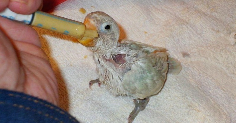 To feed the chick, you need to take it in your hand, fix the head, and take no more than 6 ml of porridge in a syringe. The mixture should not be too cold or hot.. In the upward raised beak, you must place the tip of the syringe. The nestling should choose the rate of eating food. End of feeding - swelling of goiter. Mandatory procedure after eating is wiping the beak with a clean towel. Like young children, after eating chicks love to sleep.