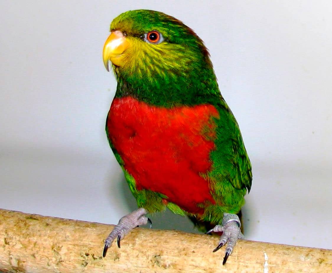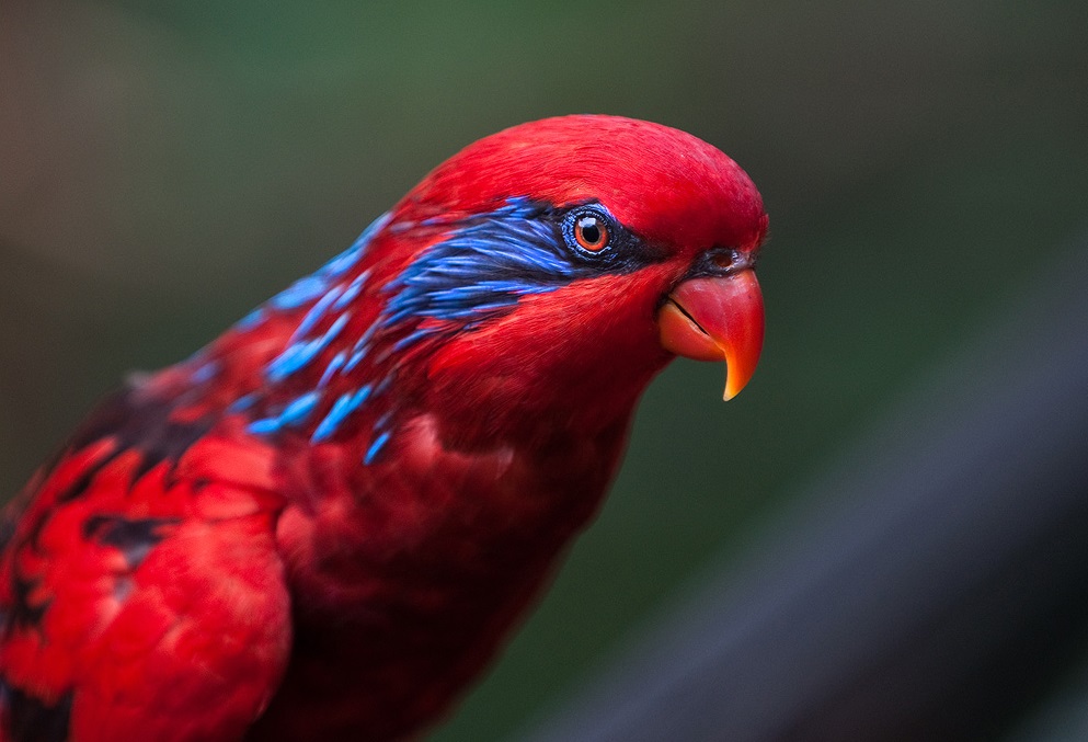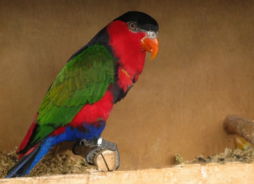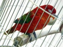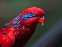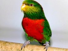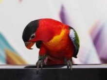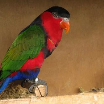 Red lory plus the main color (red) has more blue and black shades. Any species of Lori parrots is characterized by a weak beak, their food is mostly soft and juicy, but not firm.