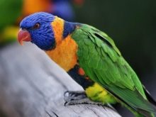 Its plumage is striking in its rainbow colors. In the “clothes” of this amazing bird there can be blue, red, green, orange, yellow. Their bright color helps in their natural habitat to mask among tropical flowers and plants. The length of his body can be 20–40 cm. There is still such a species as lorikets, and they can be much smaller than their fellows in size. In total, Lorium has about seventy species.