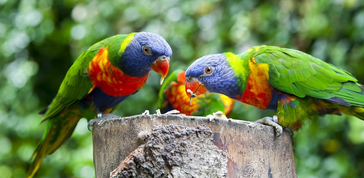 The most common species is considered to be Ostrich Lory. His back, belly and wings are green, his head is blue above and violet at the back; the breast is red with blue, there are white and yellow specks on the wings. The popular species also include rainbow lorikeet, brilliant lory and red lory.