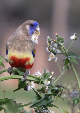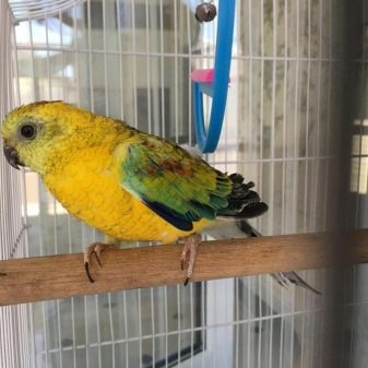 - Yellow-winged, golden-shouldered or Queensland. The males on the wings, in the shoulders are large golden-yellow spots, and in the lower abdomen - red. The females are dominated by grayish color, with brown-green shades. These parrots are medium in size, rather calm.