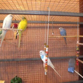 A layer of sawdust or sand, about 5 centimeters thick, is poured on the floor. The litter is changed as it is polluted, it is better to do it once a week. It is necessary to equip drinking bowls, feeding troughs, pockets for sitting, as well as various toys for entertainment and physical activity, for example, ladders, swings, tree branches. It is necessary to feed parrots 2 times a day, in the morning and in the evening, approximately at the same time. Water in drinking troughs change daily.