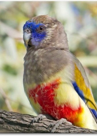 - Red-tailed chenille. As the name implies, these parrots (males) have blue spots on the “face”, that is, near the ears, eyes, and beak. The back and chest are brownish, the belly is yellow-red, the wings and tail are blue-violet. Very beautiful, spectacular coloring. However, despite the external beauty and melodic singing, experts do not recommend this species for breeding at home, especially for inexperienced poultry farmers.