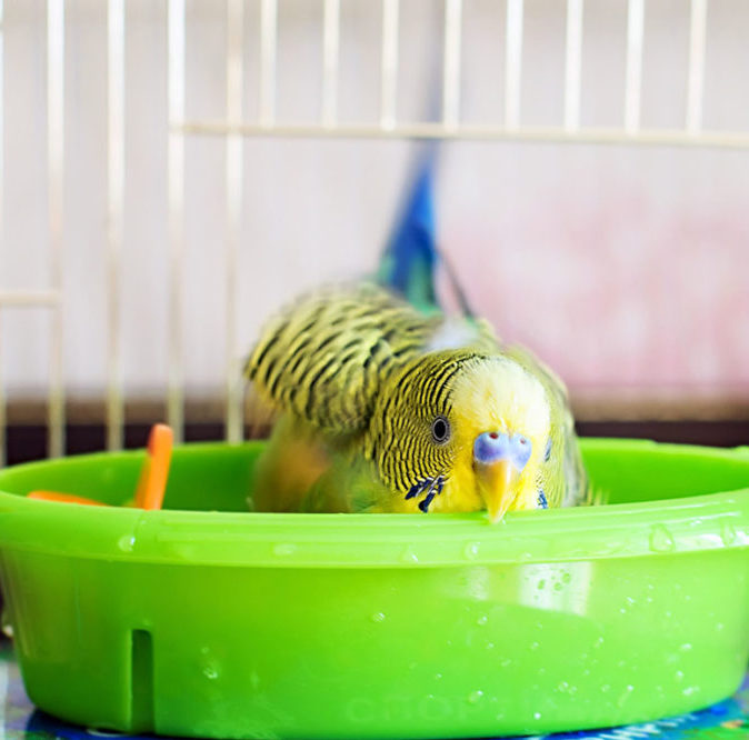 It is also necessary to avoid prolonged exposure to direct sun. Parrots are very fond of swimming. For them, they are satisfied with the “bath day” - they put a shallow but wide container with clean water on the floor of the enclosure. At the end of the procedure, the “bath” is removed.