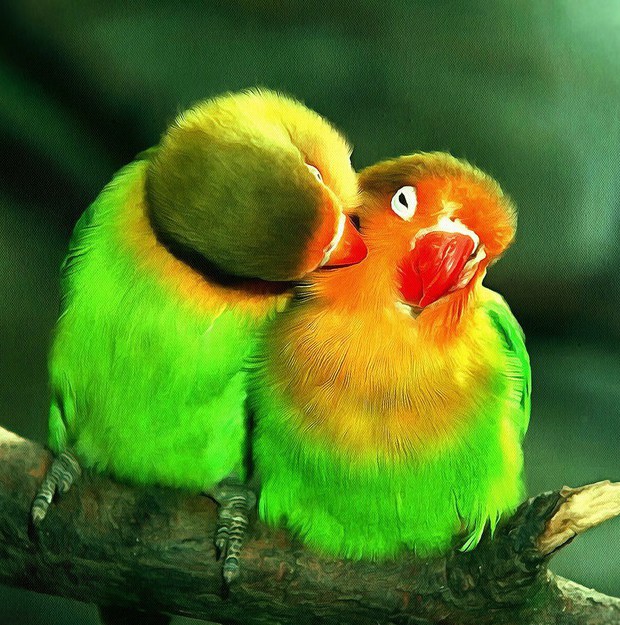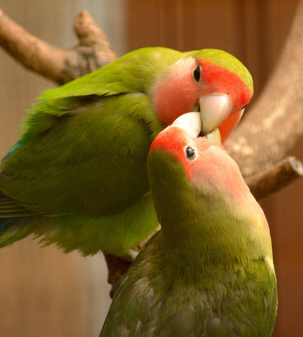 During the mating season, the male feeds the female, while she can defiantly open the beak, asking for food. This is a kind of courtship period. If the female narrows her eyes and is always near the male, then we can assume that soon both individuals will be preparing for laying eggs.