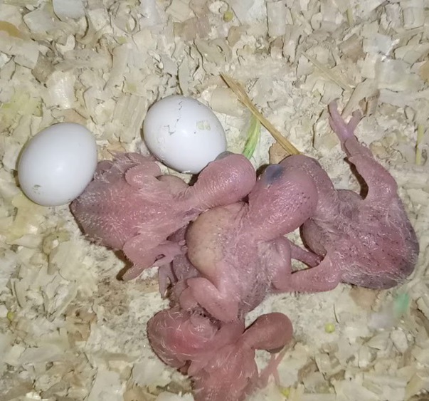 The chicks begin to peck the egg from the blunt end. It is rather rare, but it is possible that two chicks (twins) live in one egg. Parrots start feeding their young 12 hours after the first hatching. To feed the chicks for adults at home is usually not difficult. The female regurgitates the absorbed food in the chicks' beaks. A common misconception about the large appetite of chicks. In fact, they stop asking for food as soon as their gobs are filled.