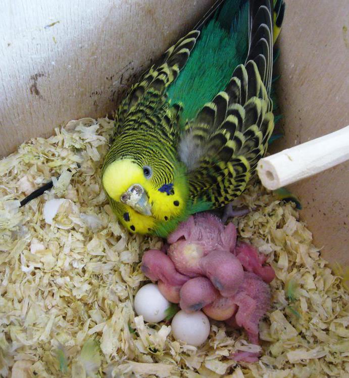 In the wild, wavy parrots begin to multiply in June. During the mating season it is necessary to feed the birds with grated shells or chalk. This is the rare case when unfertilized eggs need to be removed from the nest, as sometimes the female can carry a lot of eggs, most of which will not bring chicks.