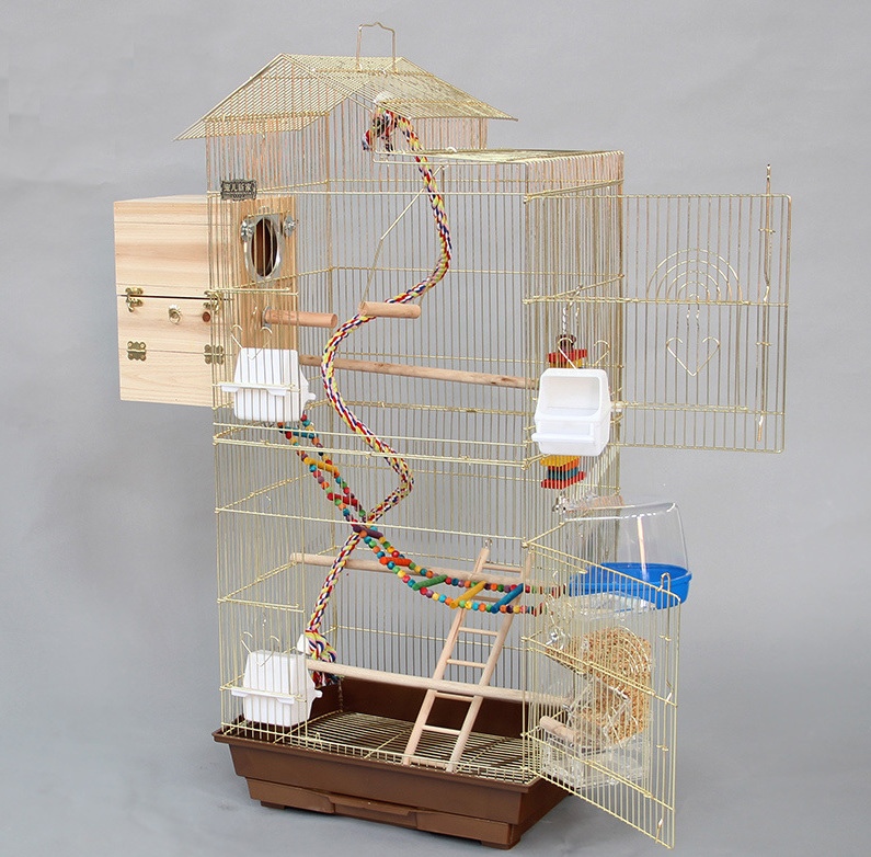 The first thing you need to equip the dwelling of birds is a nest. If a pair of birds lives in a cage, then it is necessary to install only one nest, if there are several pairs, then the corresponding number. The place of laying eggs may look like a normal nest, but can be built in the form of a small house, a mink or a mini-shed. Design can be chosen to your taste. It is important to equip the nest with a removable cover.