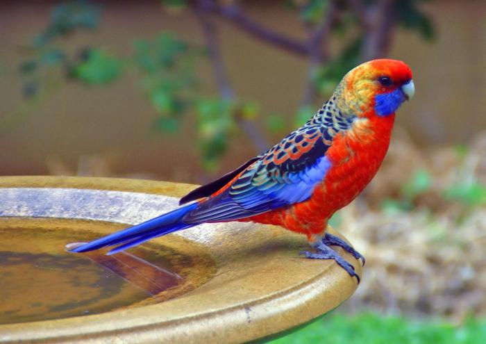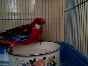 Rosella is different from other parrots in that does not tolerate high humidity. Cells are placed in dry rooms that are not blown by drafts. Best of all, if the room is equipped with air conditioning, tuned to a humidity of 60%. Rosella just love to splash and swim in clear water. The tank with it must stand in a cage continuously.