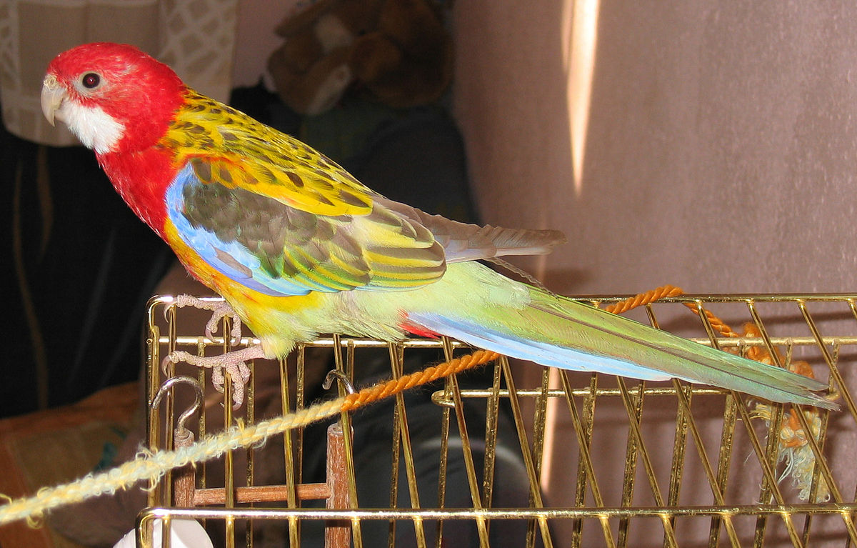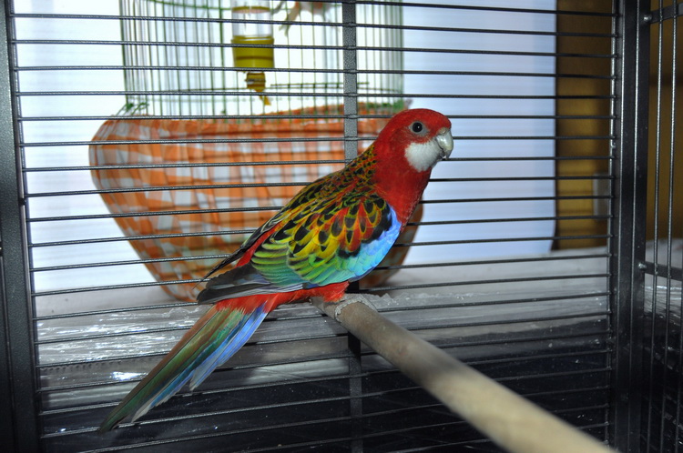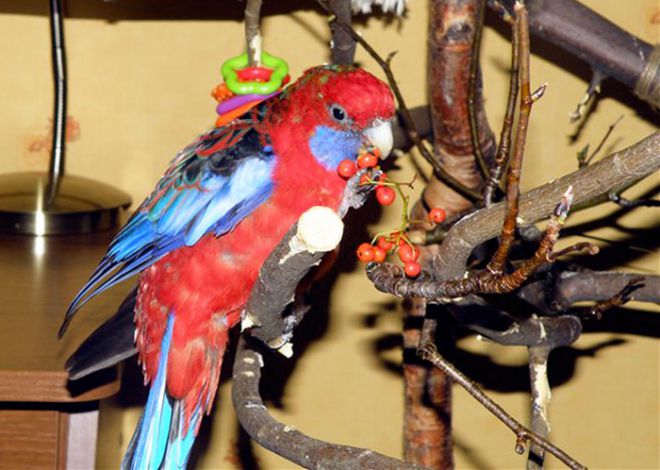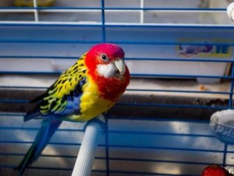 Already at home, you need to remove the perch from the carrier, then move the carrier to the wide open home cage. The bird itself will fly there. It is also important what this cell will be like.In the wild, Rosella loves to fly from one branch to another, so she needs maximum space at home.