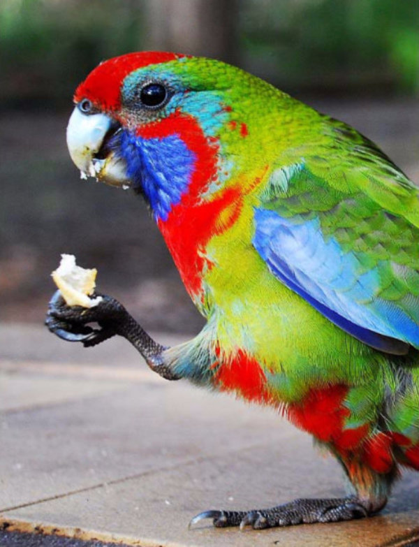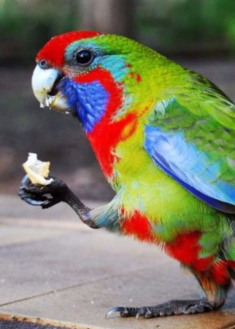 Important: this type of parrot nibbles everything. This must be taken into account when choosing cages and toys, any accessories. Sometimes rosella will “deal” with a recalcitrant object for several days in a row until it bites off.