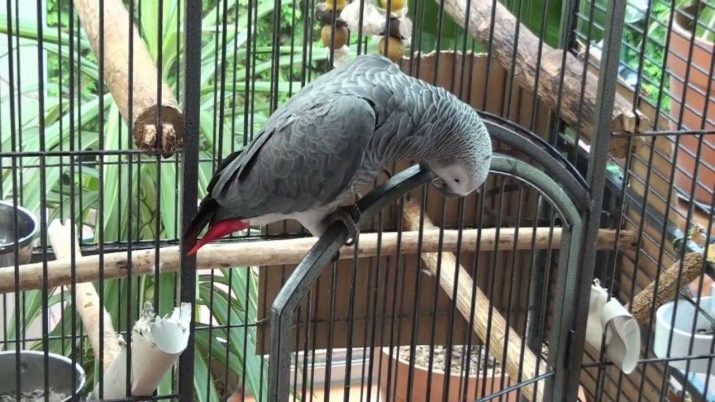 When purchasing a pet, first of all it is necessary to equip a place of residence for it. Since the Jaco is rather large for birds kept in domestic conditions and is mobile, he needs a cage or an open-air cage spacious, made of steel rods and securely closed, so that the smart bird cannot open the door on its own. In the cage, it is necessary to put and fix a drinking bowl and several plosek for feed and mineral additives. Also various perches, ladders, mirrors and other accessories are necessary.