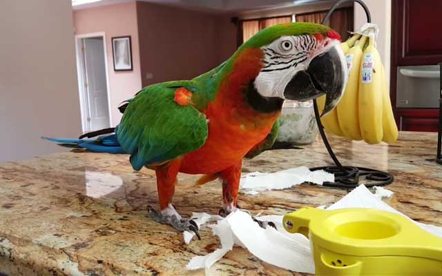 The macaw parrot's high intelligence allows it to analyze and remember a lot, the bird demonstrates excellent imitative abilities, likes to contact a person, macaw can even ask the owner to eat or drink if he wants.