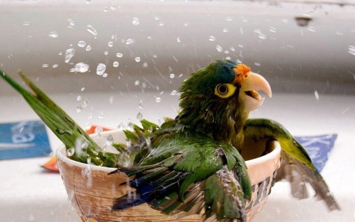 Parrots love to take baths, swimming right under the tap or in a makeshift pool in their cage. Do not refuse your pet this pleasure, as the bird realizes its needs. After water procedures, you need to make sure that there are no open vents, the fan is on, the air conditioner.