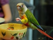 At home, parrots feed on cereal mixture. Canary, oatmeal and other cereals, millet, sunflower seeds are quite suitable. The main thing - do not overfeed the bird. An adult bird needs about one and a half tablespoons of feed per day. Parrots with pleasure eat finely chopped or grated vegetables and fruits, various greens.