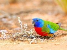 The pink-bellied parrot, also known as the boork. The scientific name is Neophema bourkii. The size of the bird is about 23 cm, the length of the tail is about 10 cm.The plumage of this individual with a brown tinge, abdomen is colored red-pink. The female has white feathers on the cheeks, and the male has a blue spot on her forehead. In nature, the pink-bellied parrot is making its nests in the hollows of trees. The female at a time can lay 3-5 eggs, which incubate for 2-3 weeks.