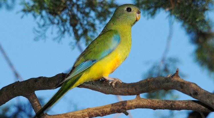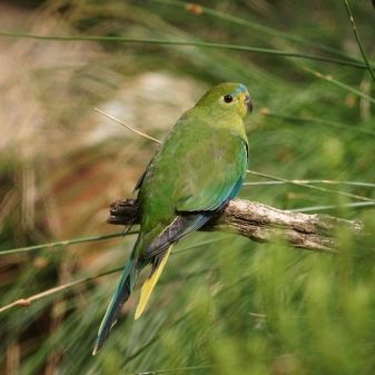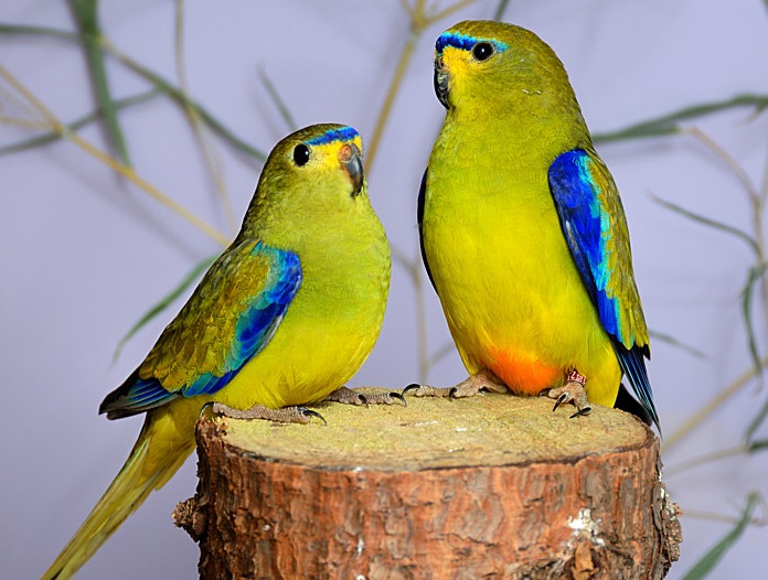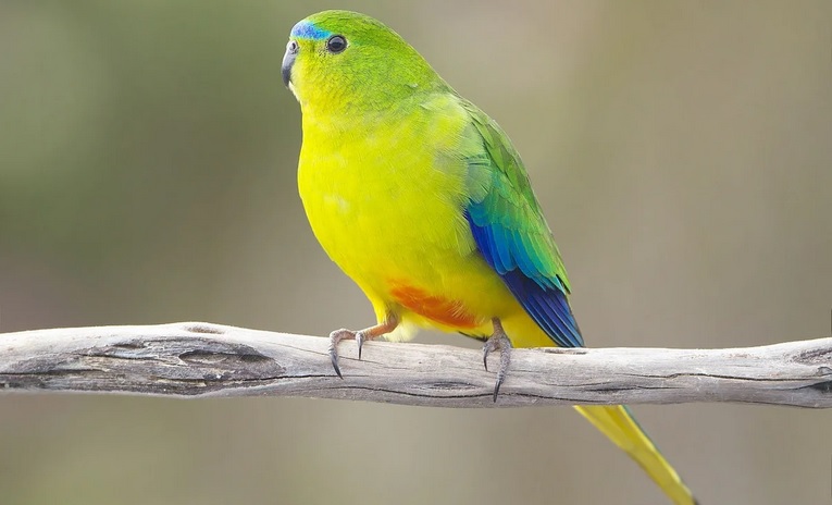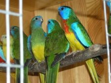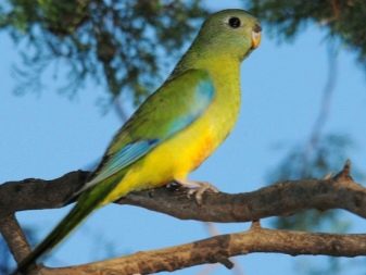 In some sources, this species is also called orange or gold-bellied. The scientific name is Neophema chrysogaster. Parrot lives on the islands of Tasmania and King. Refers to an endangered species whose trade is prohibited. The size of a golden parrot is not more than 20 cm. The main color of the male is emerald green, on the forehead is a blue spot with a blue tint, the cheeks are yellowish, the breast and stomach are of a protective marsh color. On the lower abdomen there is a bright orange spot, for which the species got its name.