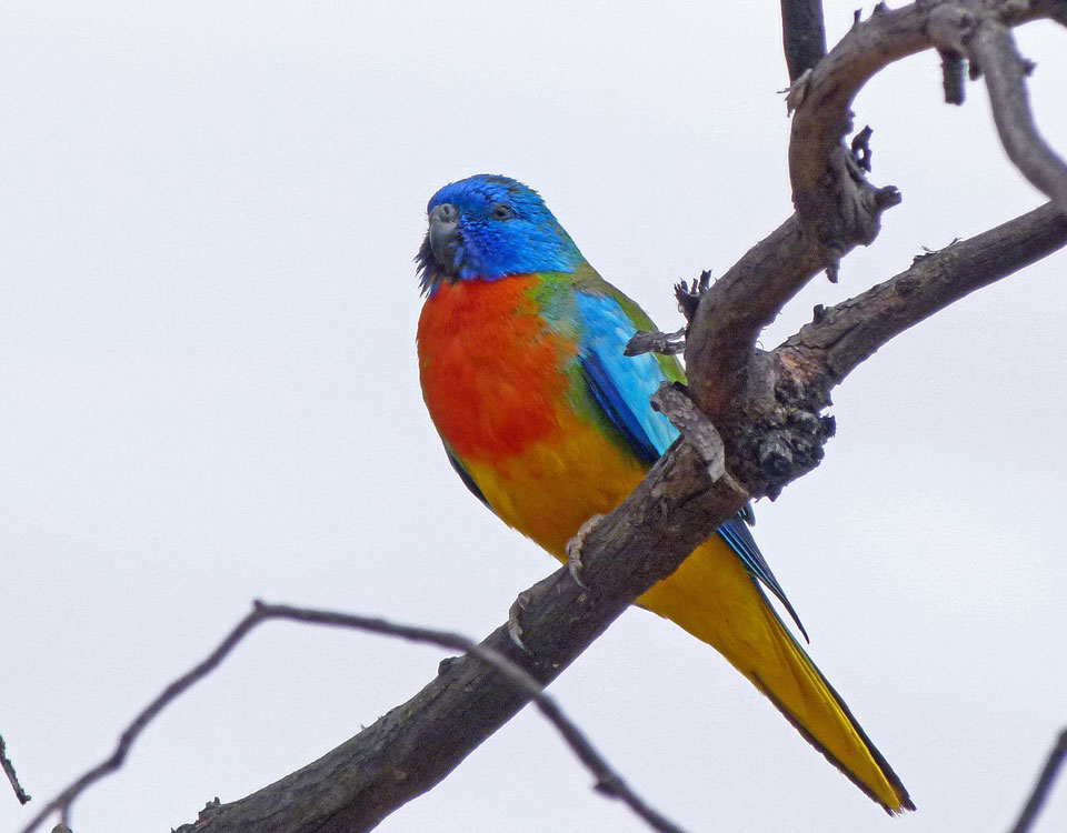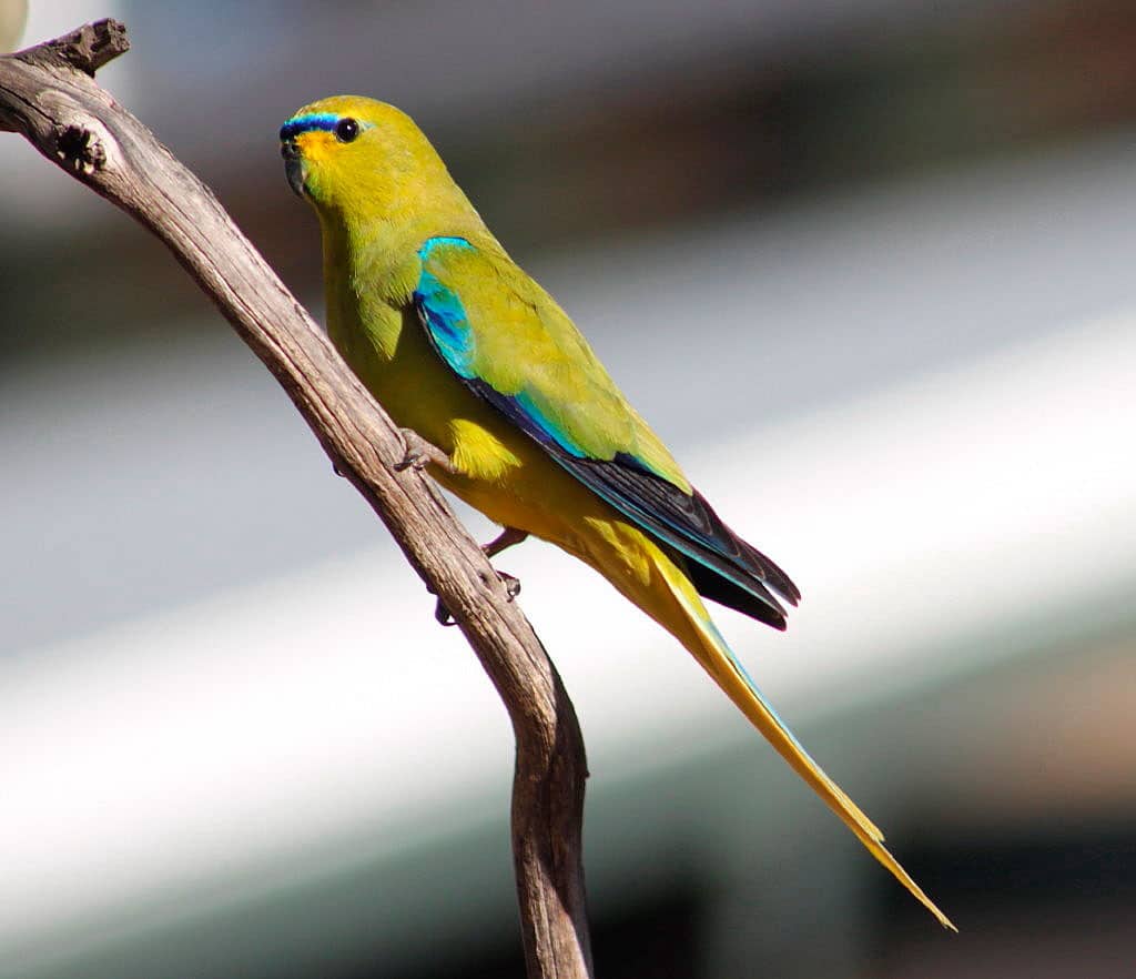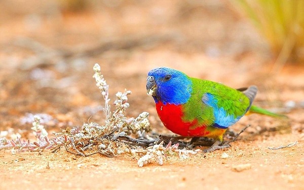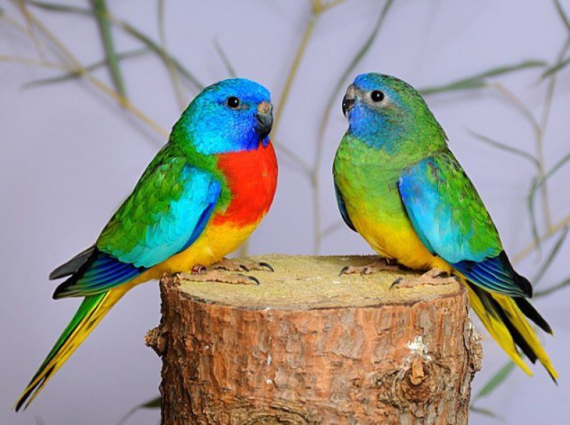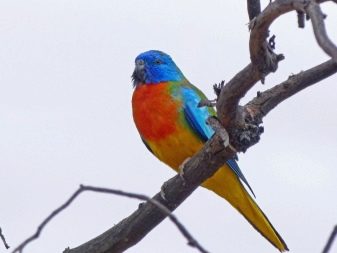 This species is considered perhaps the most beautiful among all grass parrots. Due to the special coloring it is also called glossy. In scientific literature, the species is called Neophema splendida. With standard body sizes, the red-breasted parrot has a tail as much as 17 cm! The male has an elegant shiny blue cap, a bright purple scarf around the throat. The upper part of the bird, the back and the tail, is green, and the multicolor is observed below: the belly and lower tail feathers are yellow, the belly is bright yellow, and the breast is bright scarlet.