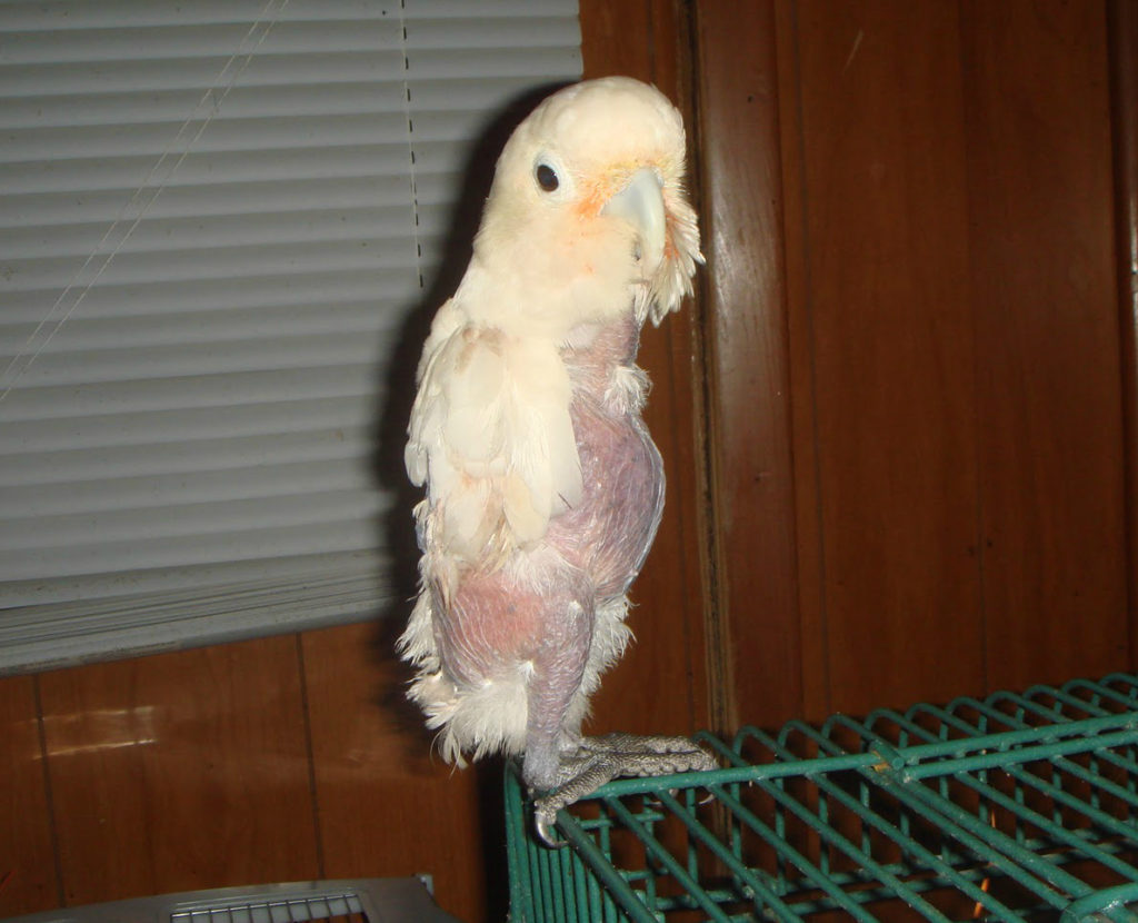 Juvenile molt lasts much longer than seasonal. Pooh can fall within 3-4 months, and sometimes up to six months. In this case, the chick, unlike an adult parrot, can become completely naked for a while. Visually, this is not a very pleasant picture, but it is impossible to avoid the first molt, since it is associated with the onset of sexual maturity of the individual.