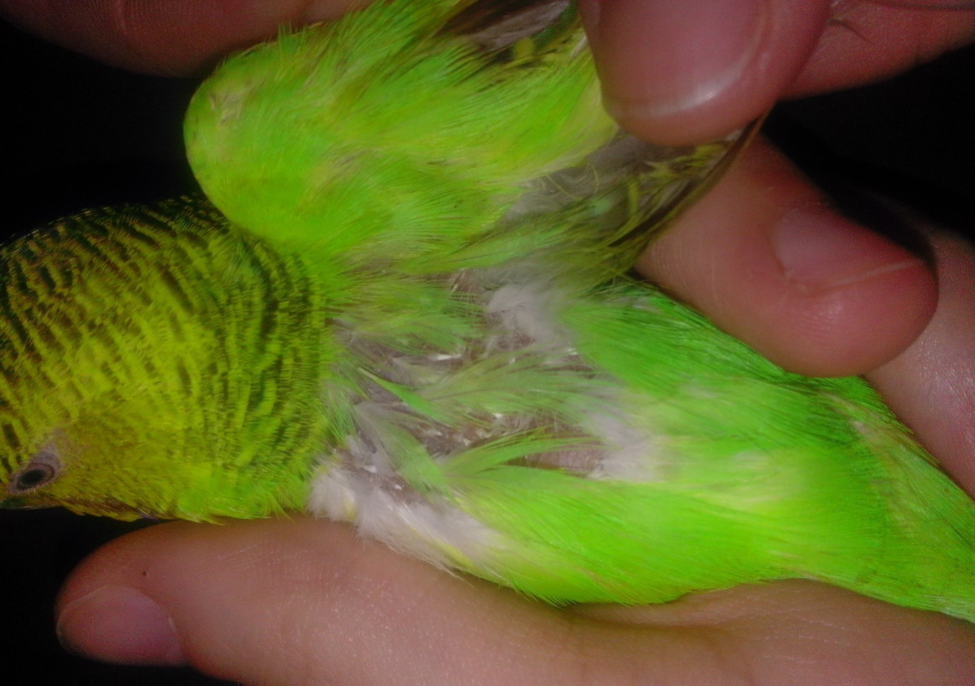 - Scabies caused by parasites can also cause intense feather loss. With knemidocoptosis, exposed areas of the body turn red and become lumpy. The disease is cured with the help of drugs and strengthening the immune system with vitamins.