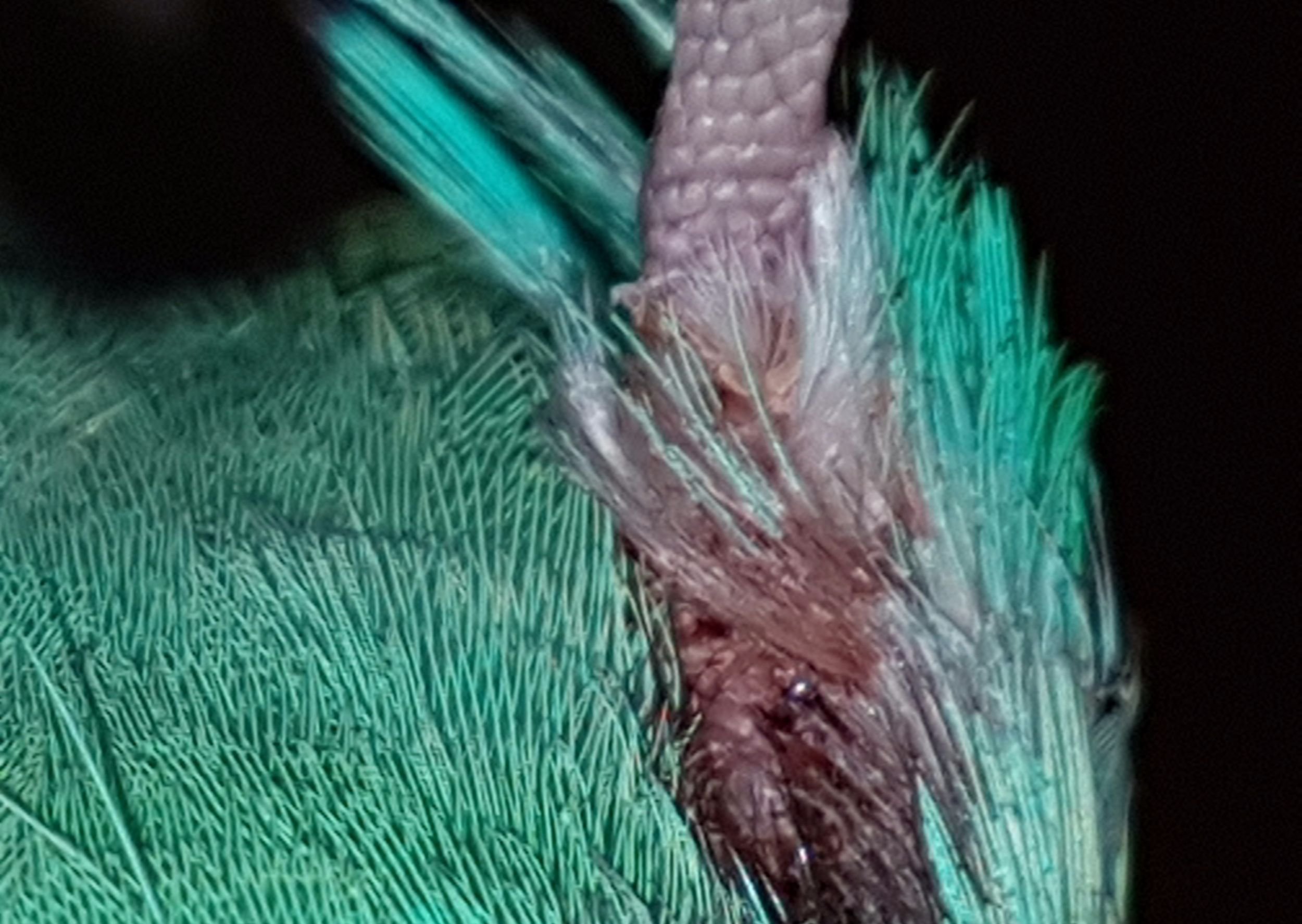 - the adult individual is very “bare”, and the new plumage is growing very badly;