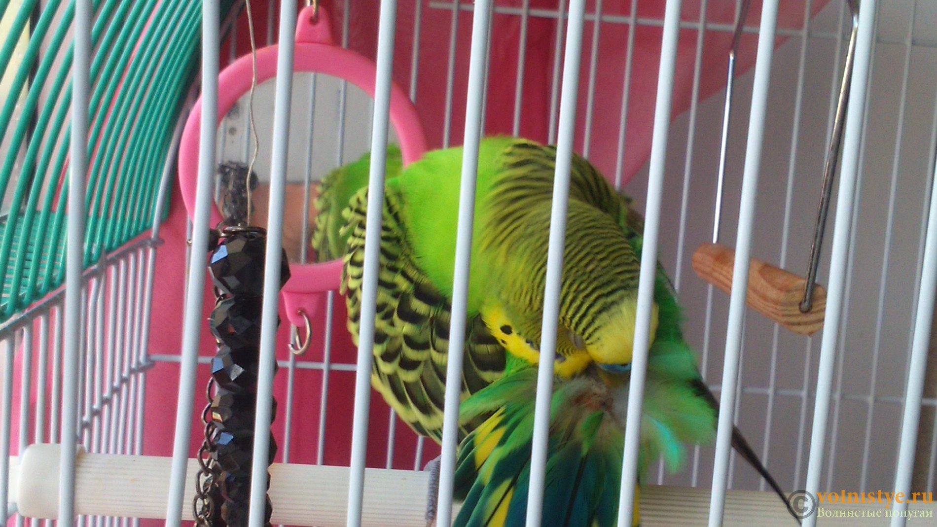 Do not deprive your wavy parrot the opportunity to swim.Thus, the bird relieves irritation on the skin, gets rid of itching and dryness. It is only necessary to ensure that the birds do not blow after water treatments. It is best to accelerate the drying process during the period of changing feathers by wiping the bird's body with soft napkins or a towel.