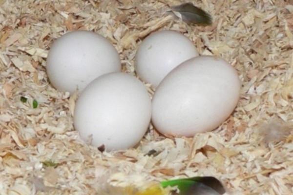 Usually birds mate after they reach one and a half years old. if you do it earlier, the babies are born premature and sick, and stillbirth is possible. As a rule, the first egg is laid 16-20 days after the appearance of the nest, as soon as the bird pulls out the second - the female begins to hatch them. The number of eggs in the clutch varies from 4 to 12, they appear with a difference of 1.5 - 2 days.