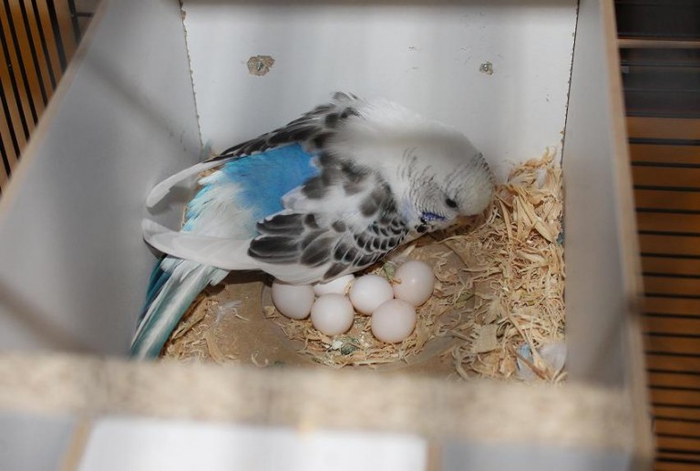 Females of budgies begin to prepare for the appearance of chicks in advance. At this point, they begin to set up a house for their future children, and they do it exclusively to their own taste, using for this purpose everything that seems useful to them: cotton wool, foam rubber, pieces of cloth, twigs, paper and small household items. As soon as all design decisions have a complete look, the males and females begin a period of “mating games”.